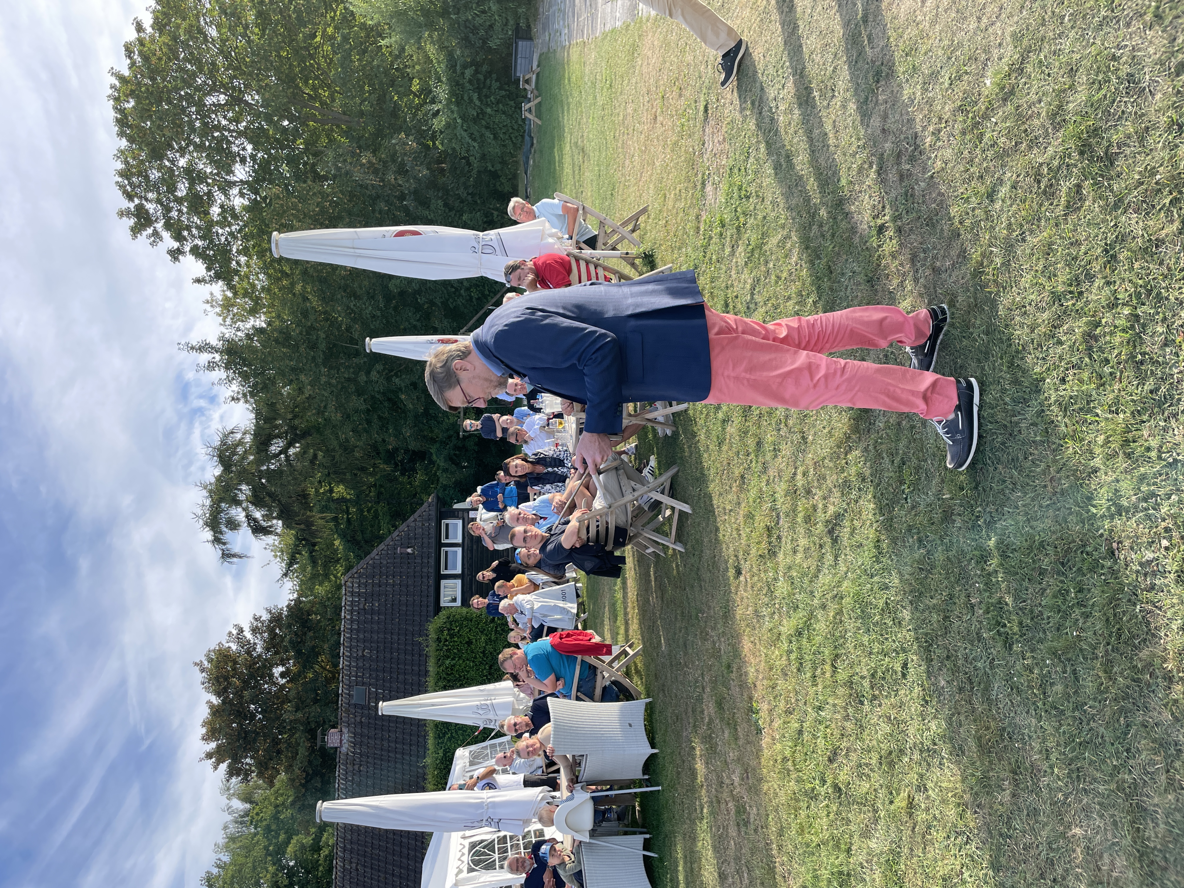 Leider zeigte sich der Samstag windarm, sodass keine reguläre Wettfahrt gestartet werden konnte. Die Boote blieben im Hafen und die Crews nutzten die Zeit für Klönschnack, kleine Bootsarbeiten oder einfach, um das sonnige Spätsommerwetter zu genießen. Am Abend verwandelte sich der Steg dann in eine gesellige Festmeile: Bei kühlem Bier, einem guten Glas Wein und einem reichhaltigen Grillbüfett wurde gelacht, erzählt und gefeiert. Die Stimmung war bestens, und einmal mehr zeigte sich, dass die Gemeinschaft im Verein mindestens so wichtig ist wie die sportlichen Ergebnisse. Ein herzliches Dankeschön gilt allen fleißigen Helferinnen und Helfern, die das Stegfest möglich gemacht haben!